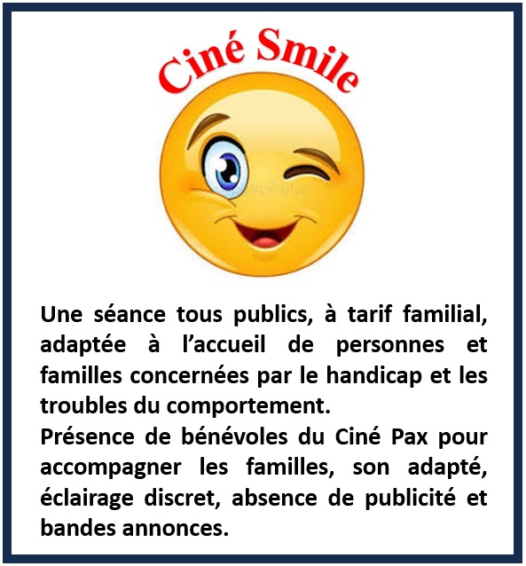 4 à 6 séances hebdomadaires pour tous les publics : familial et intergénérationnel, personnes souffrant de troubles du comportement ou de handicap mental (séances Ciné Smile), seniors en partenariat avec l’ADMR, scolaires…
